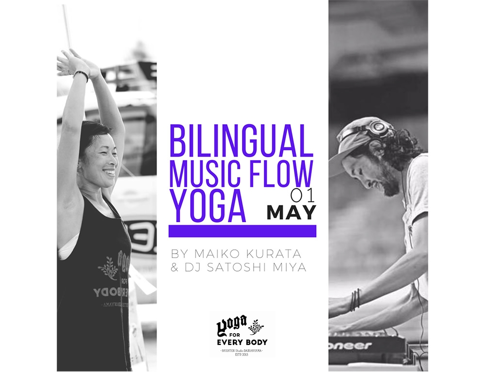 Maiko Kurata ×DJ Satoshi Miya による朝の『ヨガと音楽』!『ヨガと音楽で世界を繋ぐ!』をテーマに世界各国の音楽に合わせて、日本語×英語のバイリンガルヨガクラスです。カナダ・バンクーバーでヨガを学んだMaiko Kurataが日本語&英語でリードします。