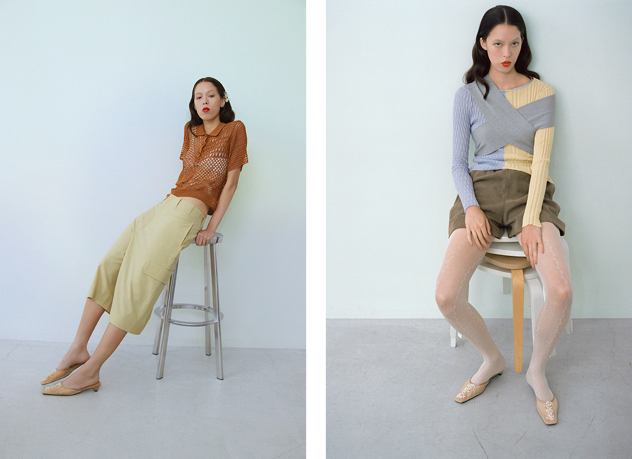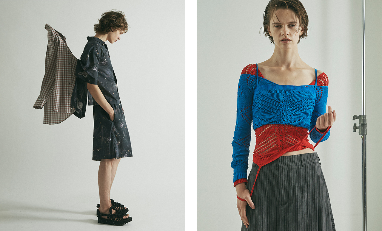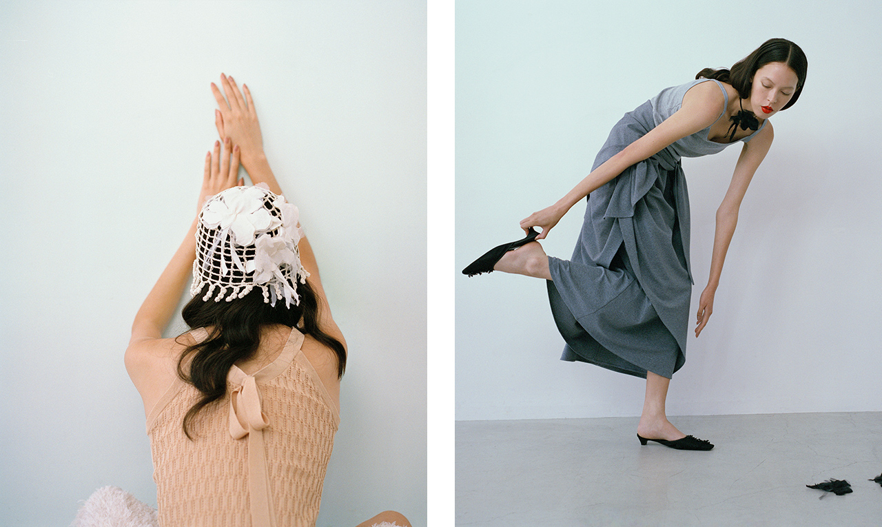 気鋭の日本人デザイナーを中心に国内外ブランドを扱う「HIGASHI」。当初から継続してセレクトする「leinwände」の26SSコレクションは、野生に宿る理性の美学がテーマ。風に揺れる草木のうねりを手編みで表現したクロシェニットは、原始的な力強さを宿しながら身体にやわらかく寄り添う一着。「MOONSTAR」とのパール装飾シューズや石のようなビーズを配したカットソーは、カジュアルな日常着に静かな輝きを添えるアイテムに。「アトリエ染花」との花のコサージュやジュエリーは、手仕事の温度を感じさせてくれる仕上がり。自然とそこに加わる人の手に焦点を当て、クラフトとの関係性をより深く見つめ直すラインナップを展開。