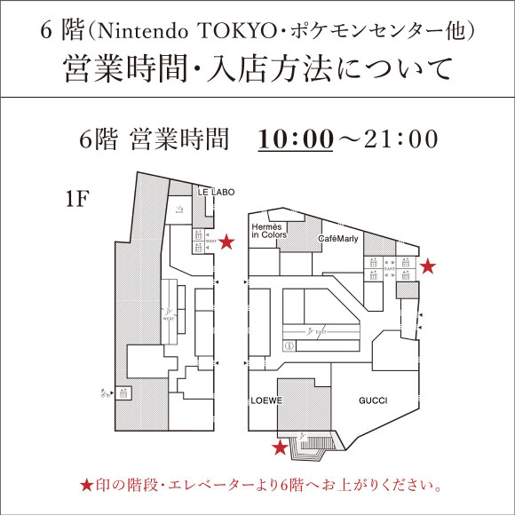 ※6Fから他フロアへのエスカレター、エレベーターでの移動は、11:15頃より可能となります。お急ぎの方は、1F正面入口・ナカシブ通り入口よりご入店ください。