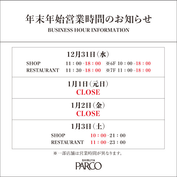渋谷パルコをご愛顧いただき、誠にありがとうございます。
