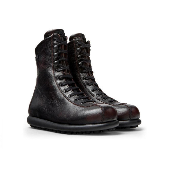 ボクシングシューズからインスパイアを得た力強い印象のハイブーツがアーカイブから蘇り、プレミアムなブラッシュ加工レザーが大胆なルックスを演出。