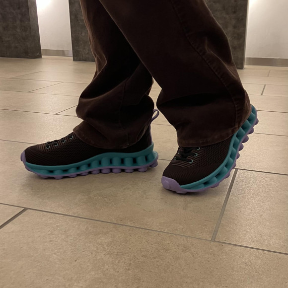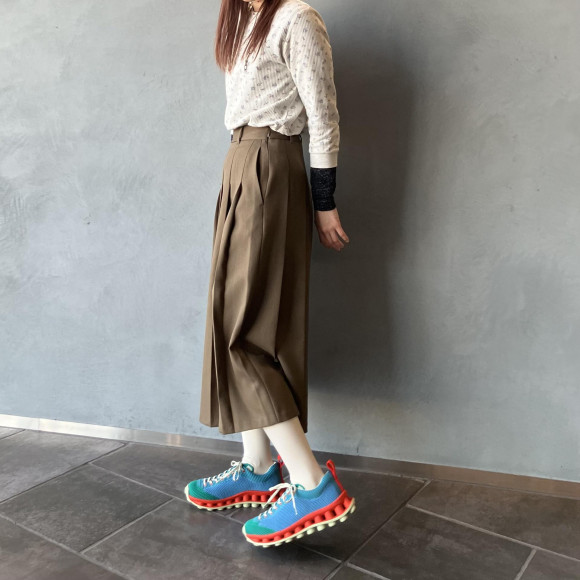 2026年春夏コレクションのクリエイティブコラボレーションも、カンペールが2014SSに発表したアーカイブシューズ「PELOTAS NU(ペロータスヌー)」を最大限に再解釈しました。歩行体験を最大限に高めるために、クッション性を 2 倍にしたダブルスタッド仕様の XL EXTRALIGHT® EVA アウトソールを採用しています。