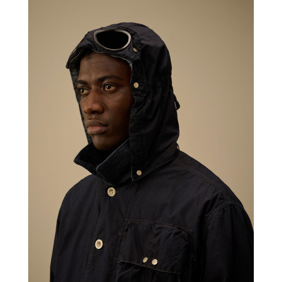 ●C.P. Company のアイコニックなナイロン/コットン素材である50 Filiを使用し、インディゴ染めで深みのある独特の色調に仕上げたゴーグルジャケット。このモデルは取り外しと調節が可能なメッシュのGoggleフード、ボタン留め、スナップ留めの胸ポケットとフロント・フラップポケットが特徴です。調節可能なボタンカフス、バックボタンアジャスター、背中と内側に施されたロゴワッペンが特徴。裏地はメッシュ。レギュラーフィット。