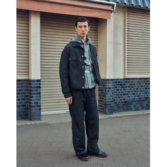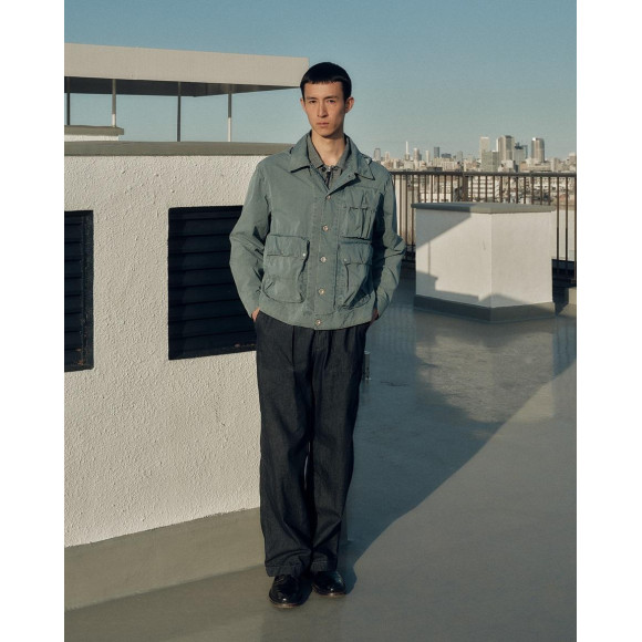 50 Fili Goggle Jacketは、インディゴのブリーチ染めによって再構築。着こまれたような風合いが特徴的な一着。