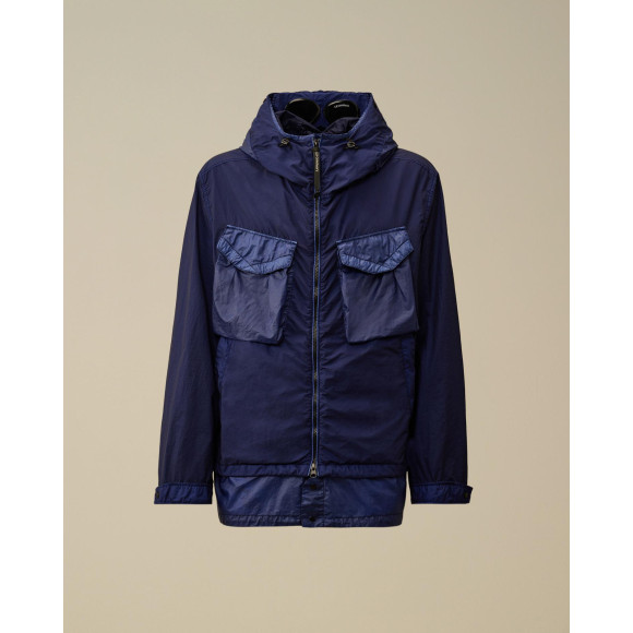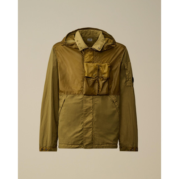 ●Flatt NylonとCSⅡとのミックス使いされた調整可能なフードが付いた襟付きショート丈ジャケット。