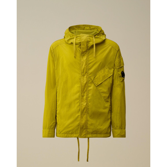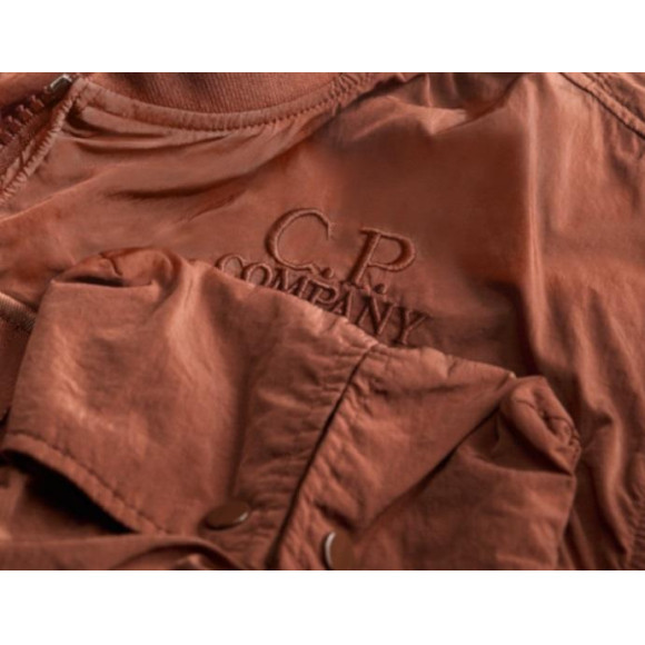 C.P.COMPANYの創設当初に開発された、ナイロンのマルチフィラメントを織り上げたChromeファブリック。その最新バージョンには、再生ナイロンの糸を使用しています。これは、可能な限り再生繊維を用いるという取り組みの一環でもありますが、わずかに科学構造が変わるだけで、生地の質感もより自然で柔らかなものとなります。また、ガーメントダイの工程において最も基本的な部分となる染料の吸収のされ方も変わります。